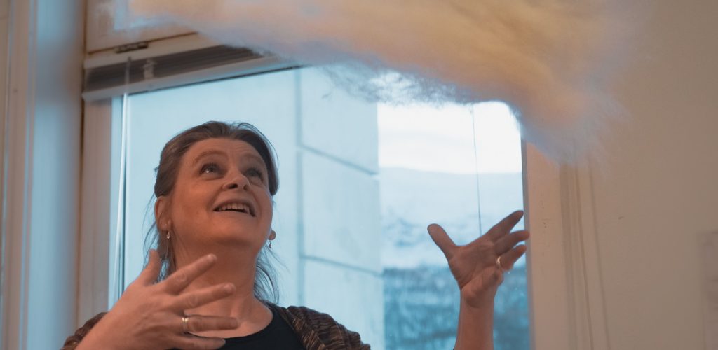 Under Barents Spektakel 2021 the artist will make use of the entire 2nd floor of Terminal B to create a large scale and Corona-friendly wool installation – a textile soundwork that provides associations of past, present and future.